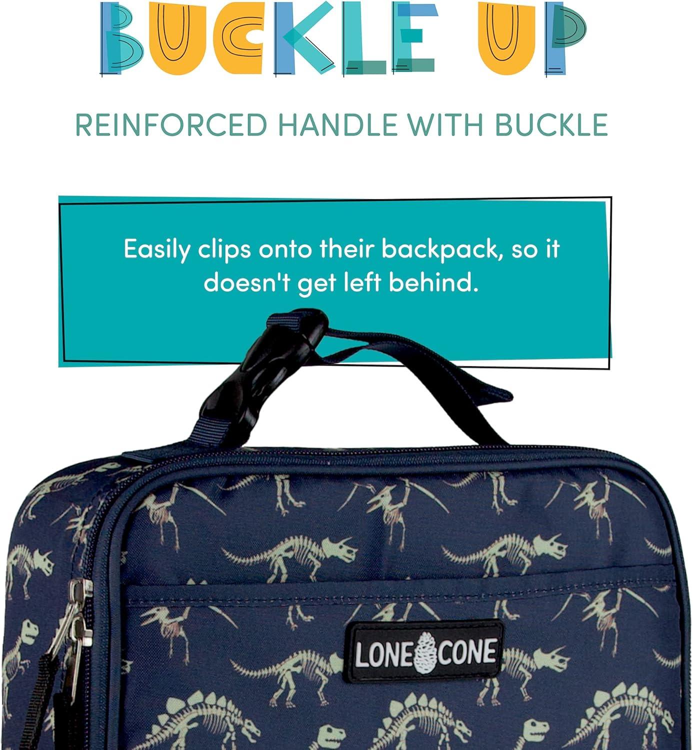 Lone Cone Kids’ Insulated Lunch Box – Fun Patterns for Boys and Girls, Fossil Friends, Standard