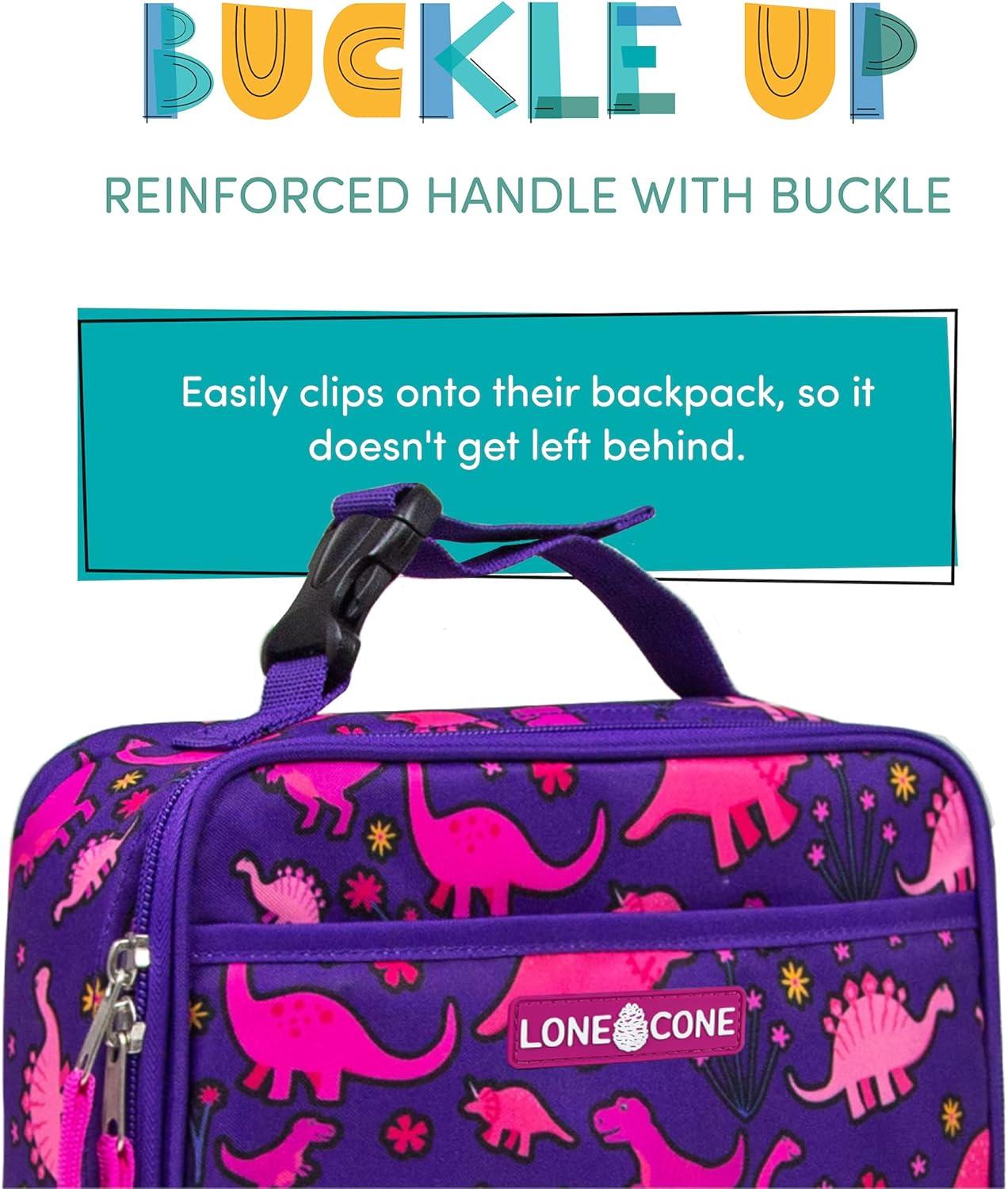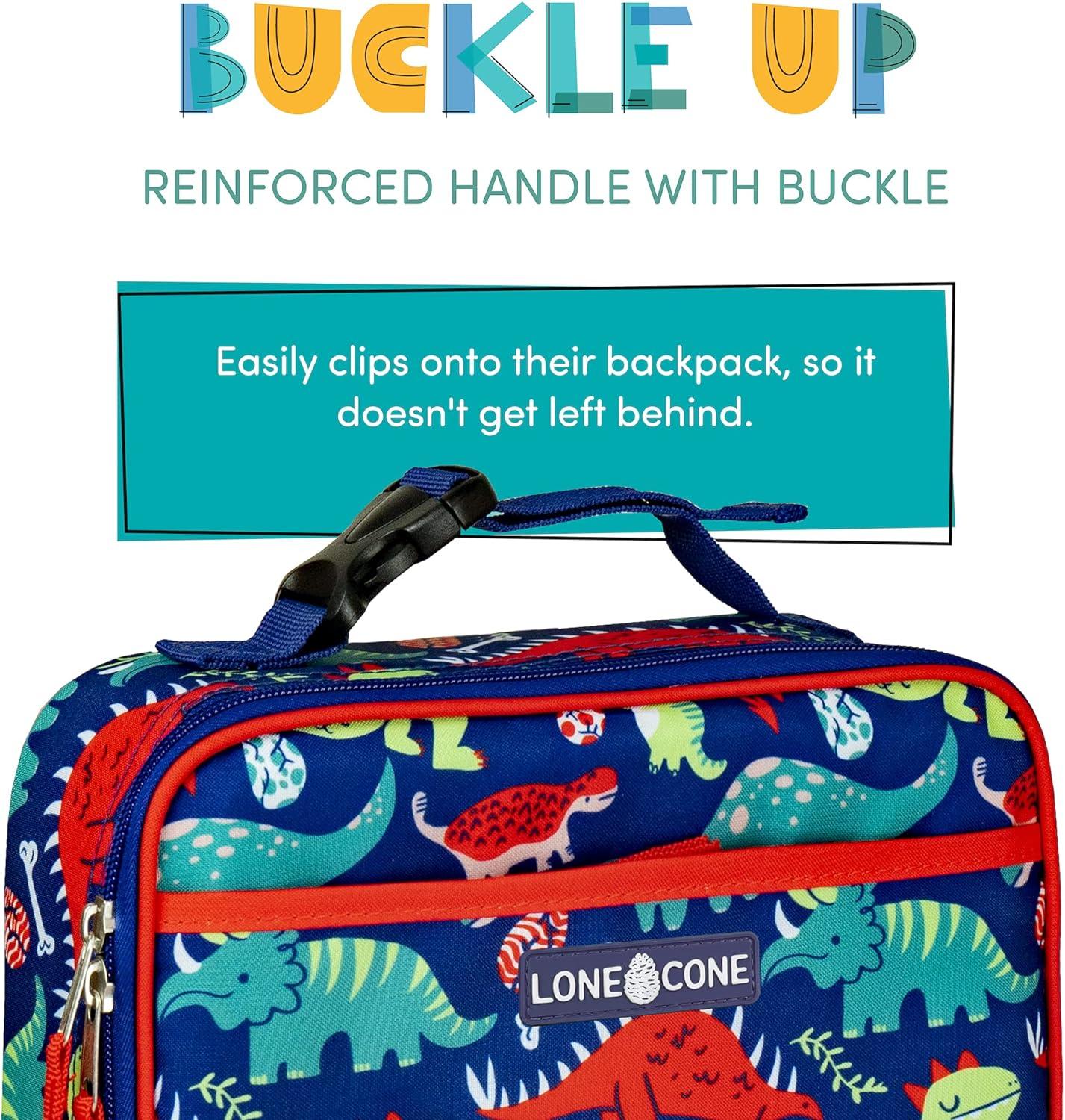 Lone Cone Kids’ Insulated Lunch Box – Fun Patterns for Boys and Girls, Snack-O-Saurus, Standard