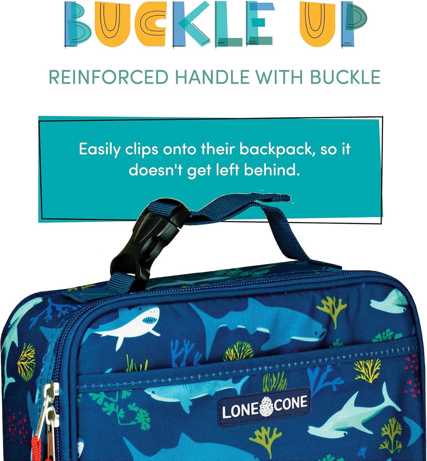 Lone Cone Kids’ Insulated Lunch Box – Fun Patterns for Boys and Girls, Shark Attack, Standard