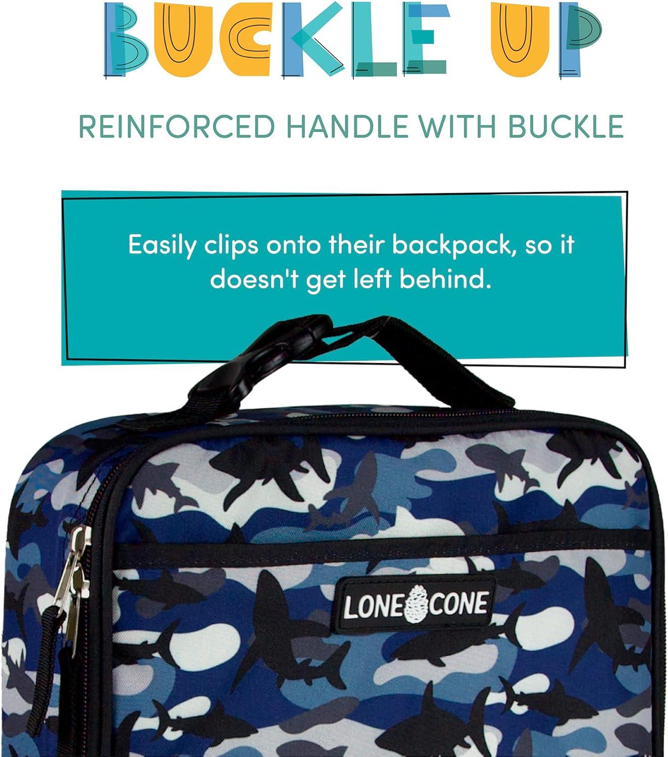Lone Cone Kids’ Insulated Lunch Box – Fun Patterns for Boys and Girls, Shark Shadows (Camo), Standard
