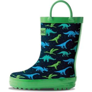 Lone Cone Kids Rain Boots for Girls & Boys – Waterproof Natural Rubber Toddler Rain Boots with Non-Slip Outsole & Easy Pull Handles – Solid, Pattern & Glitter Designs(01 – Puddle-a-saurus Dinosaur)