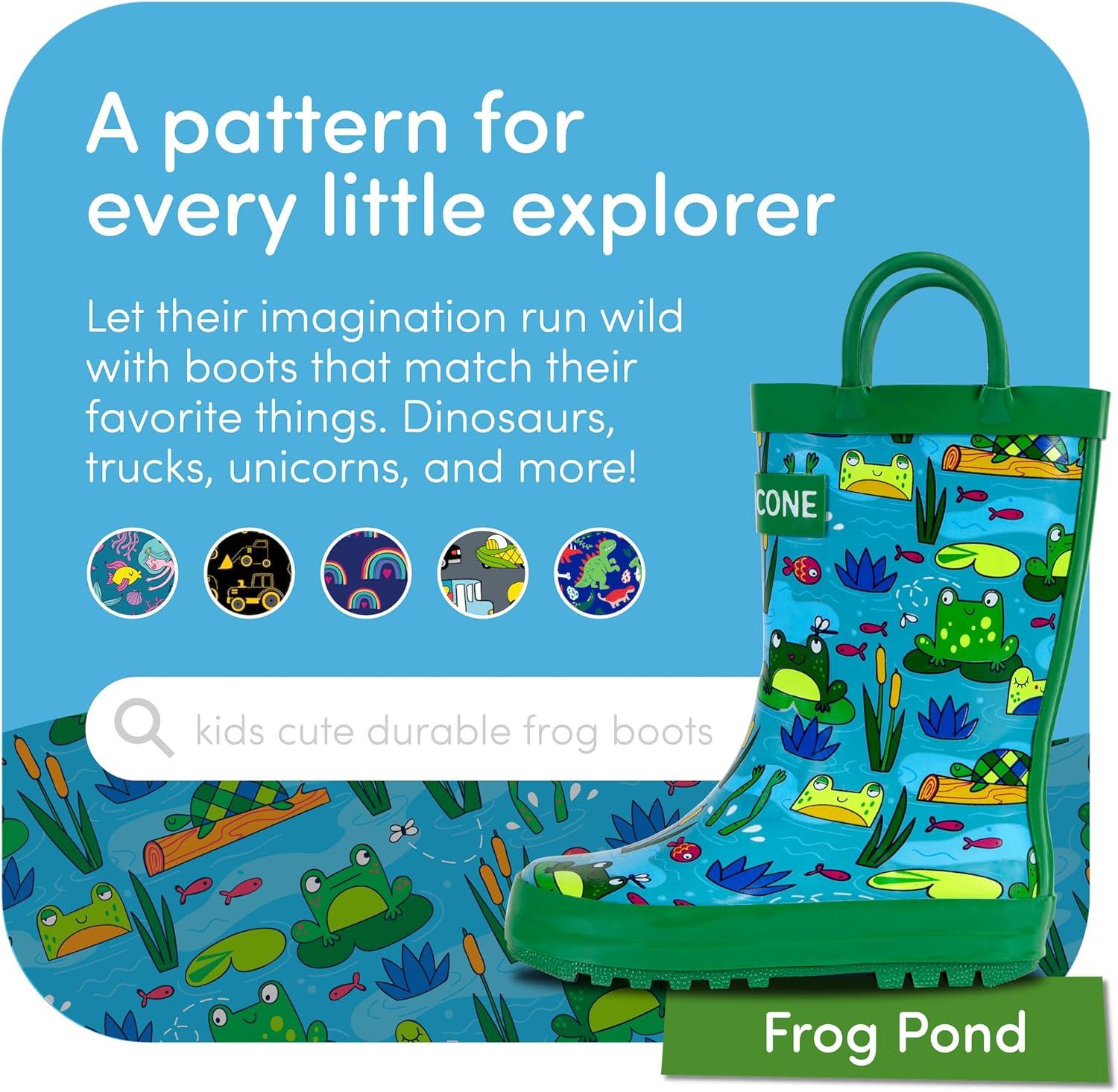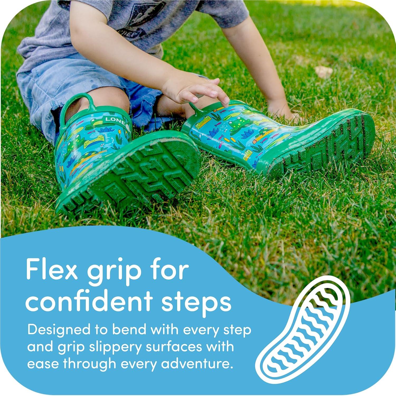 Lone Cone Kids Rain Boots for Girls & Boys – Waterproof Natural Rubber Toddler Rain Boots with Non-Slip Outsole & Easy Pull Handles – Solid, Pattern & Glitter Designs(10 – Shark Shadows)