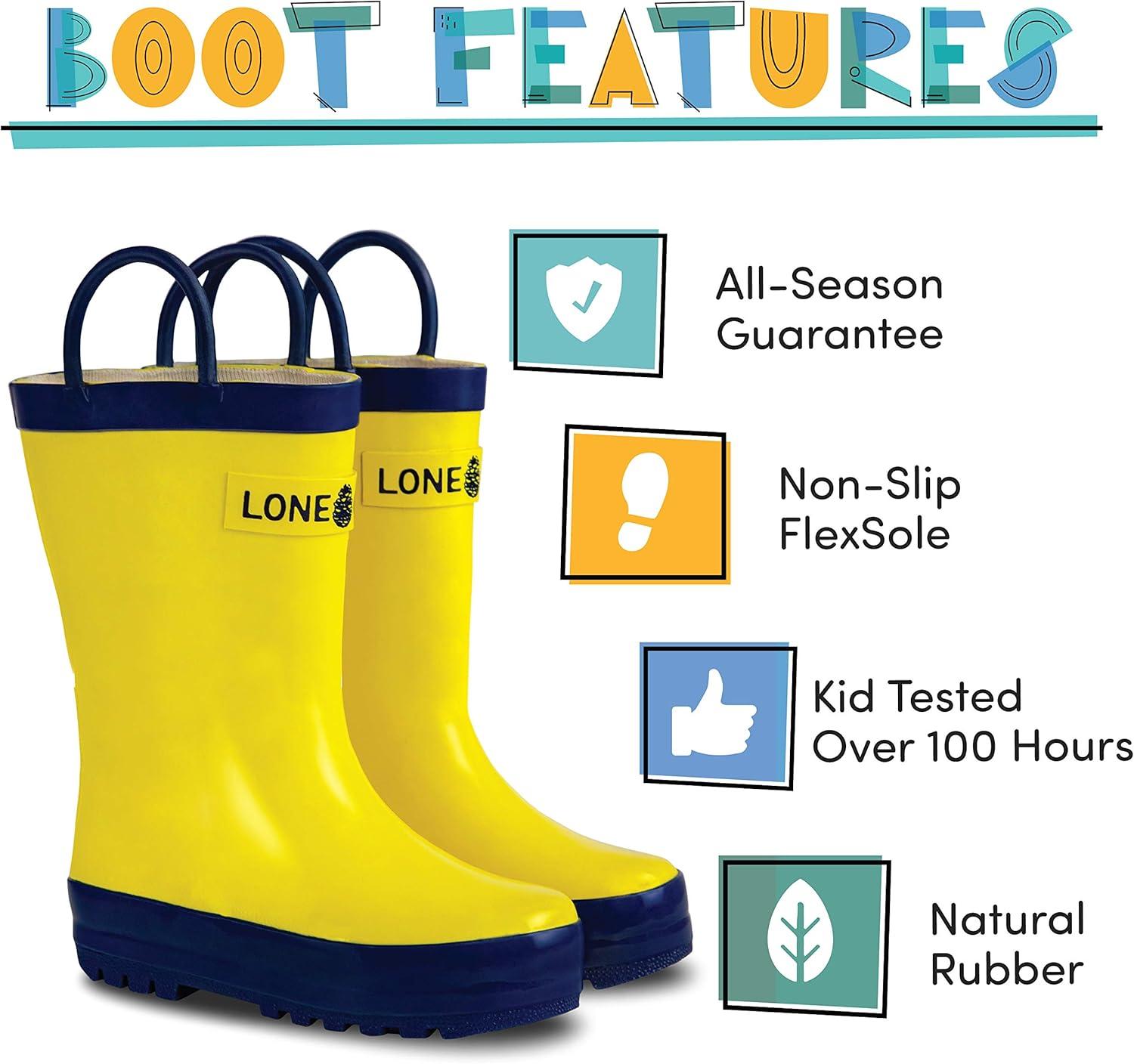 Lone Cone Kids Rain Boots for Girls & Boys – Waterproof Natural Rubber Toddler Rain Boots with Non-Slip Outsole & Easy Pull Handles – Solid, Pattern & Glitter Designs(11 – Shark-tastic – Handles | Matte Finish)