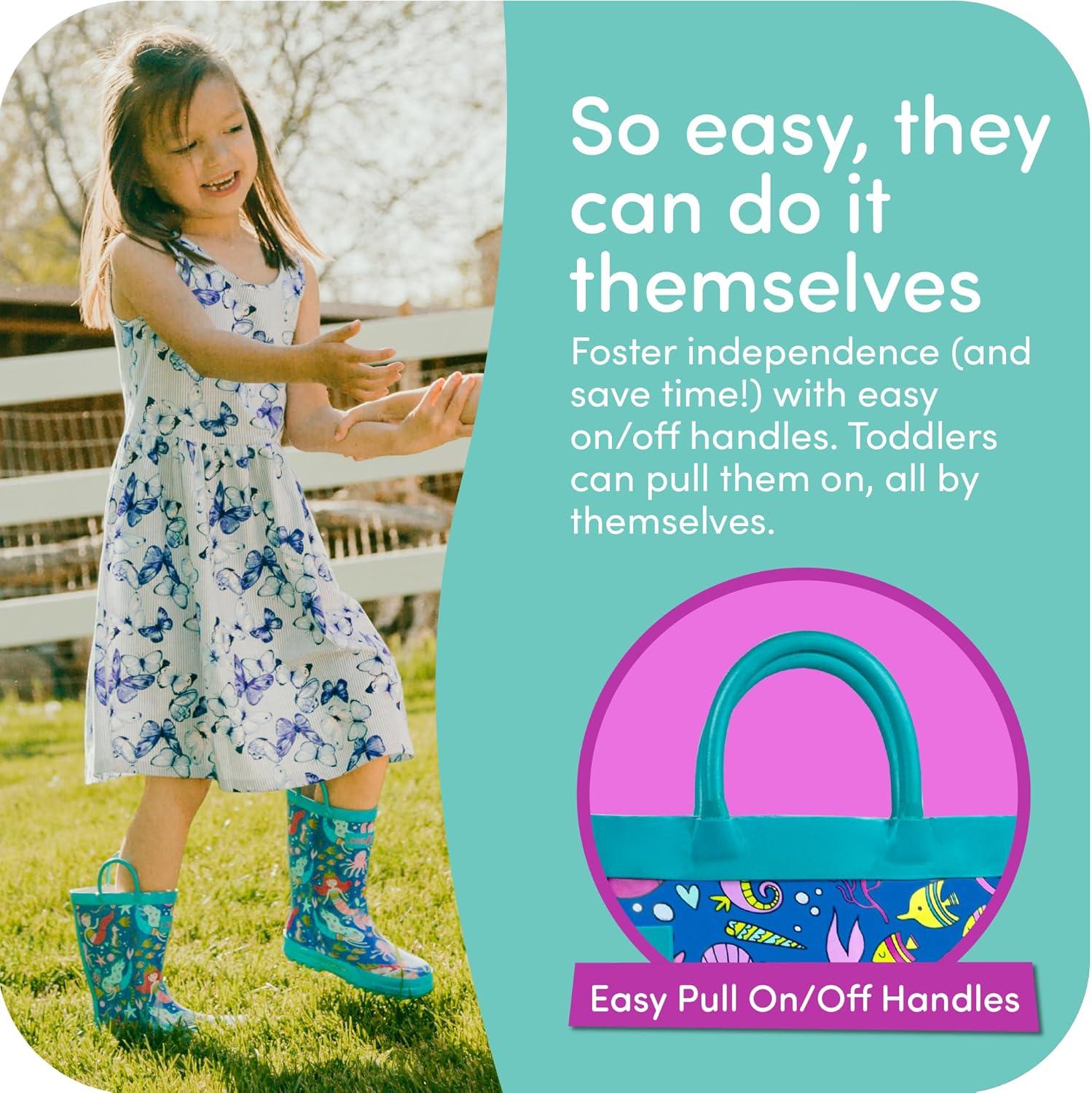 Lone Cone Kids Rain Boots for Girls & Boys – Waterproof Natural Rubber Toddler Rain Boots with Non-Slip Outsole & Easy Pull Handles – Solid, Pattern & Glitter Designs(15 – Bootiful Mermaids)