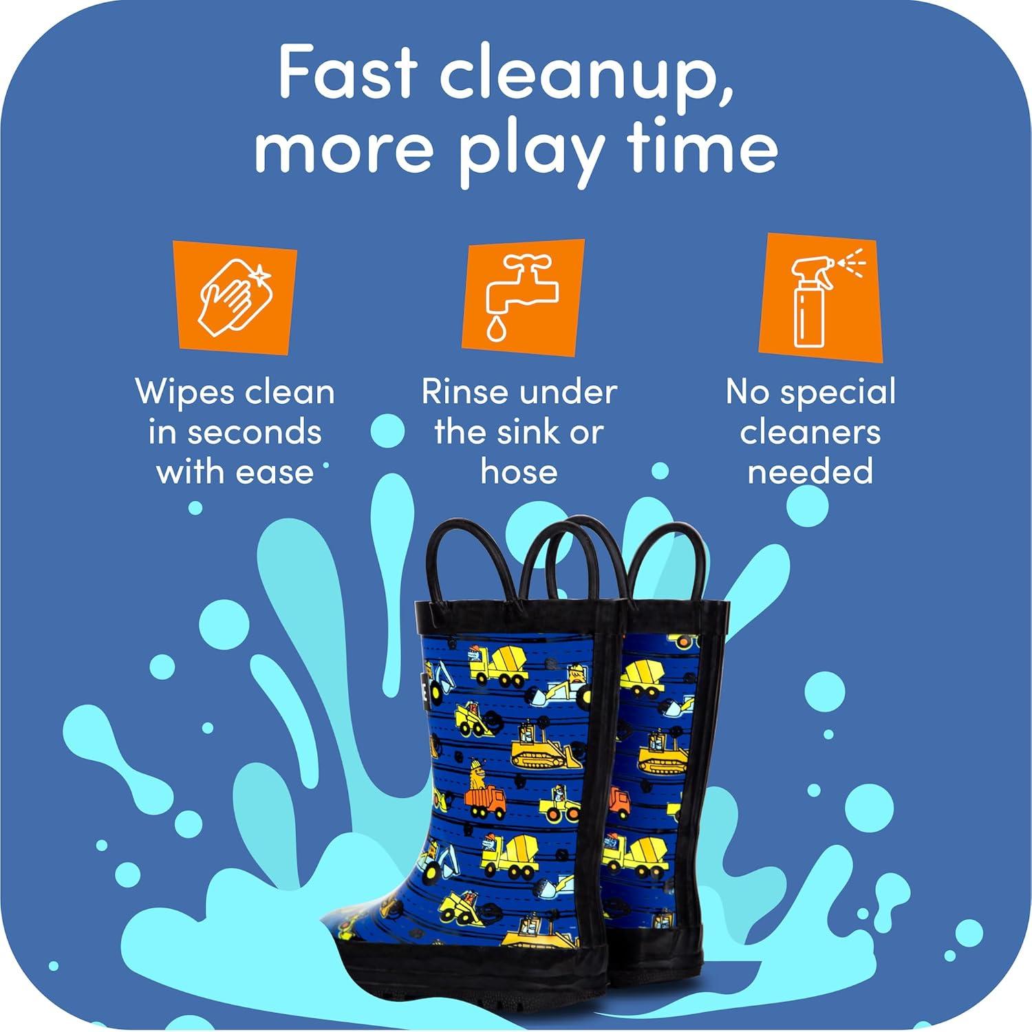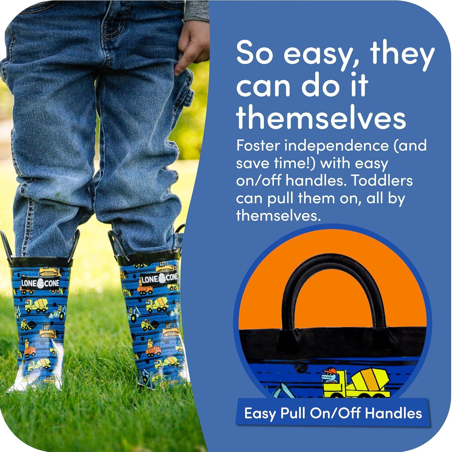 Lone Cone Kids Rain Boots for Girls & Boys – Waterproof Natural Rubber Toddler Rain Boots with Non-Slip Outsole & Easy Pull Handles – Solid, Pattern & Glitter Designs(17 – Construction Monsters)