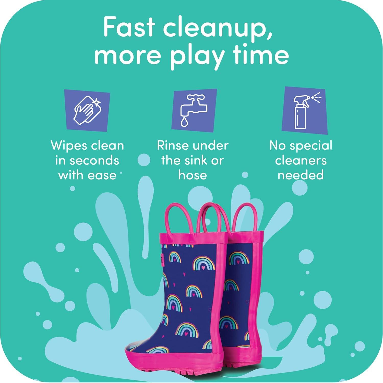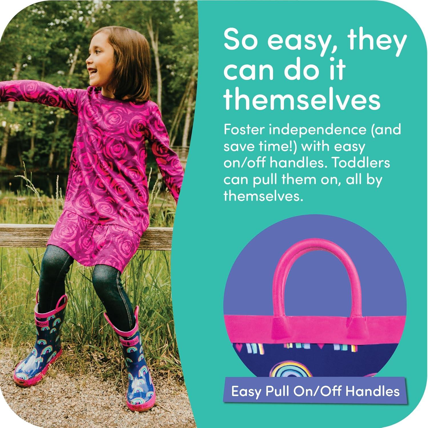 Lone Cone Kids Rain Boots for Girls & Boys – Waterproof Natural Rubber Toddler Rain Boots with Non-Slip Outsole & Easy Pull Handles – Solid, Pattern & Glitter Designs(21 – Hearts and Rainbows)