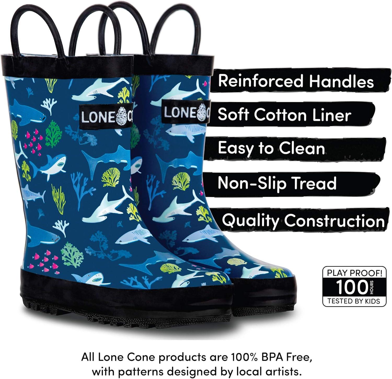 Lone Cone Kids Rain Boots for Girls & Boys – Waterproof Natural Rubber Toddler Rain Boots with Non-Slip Outsole & Easy Pull Handles – Solid, Pattern & Glitter Designs(22 – Unicorn Dreams)