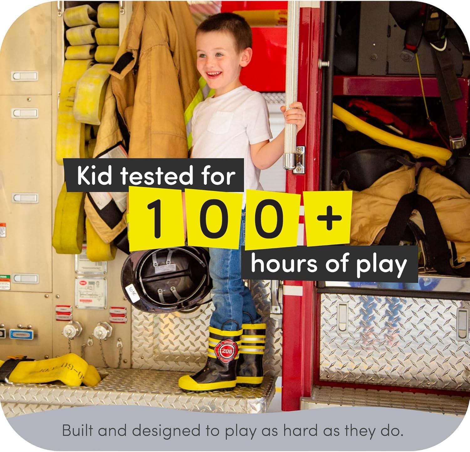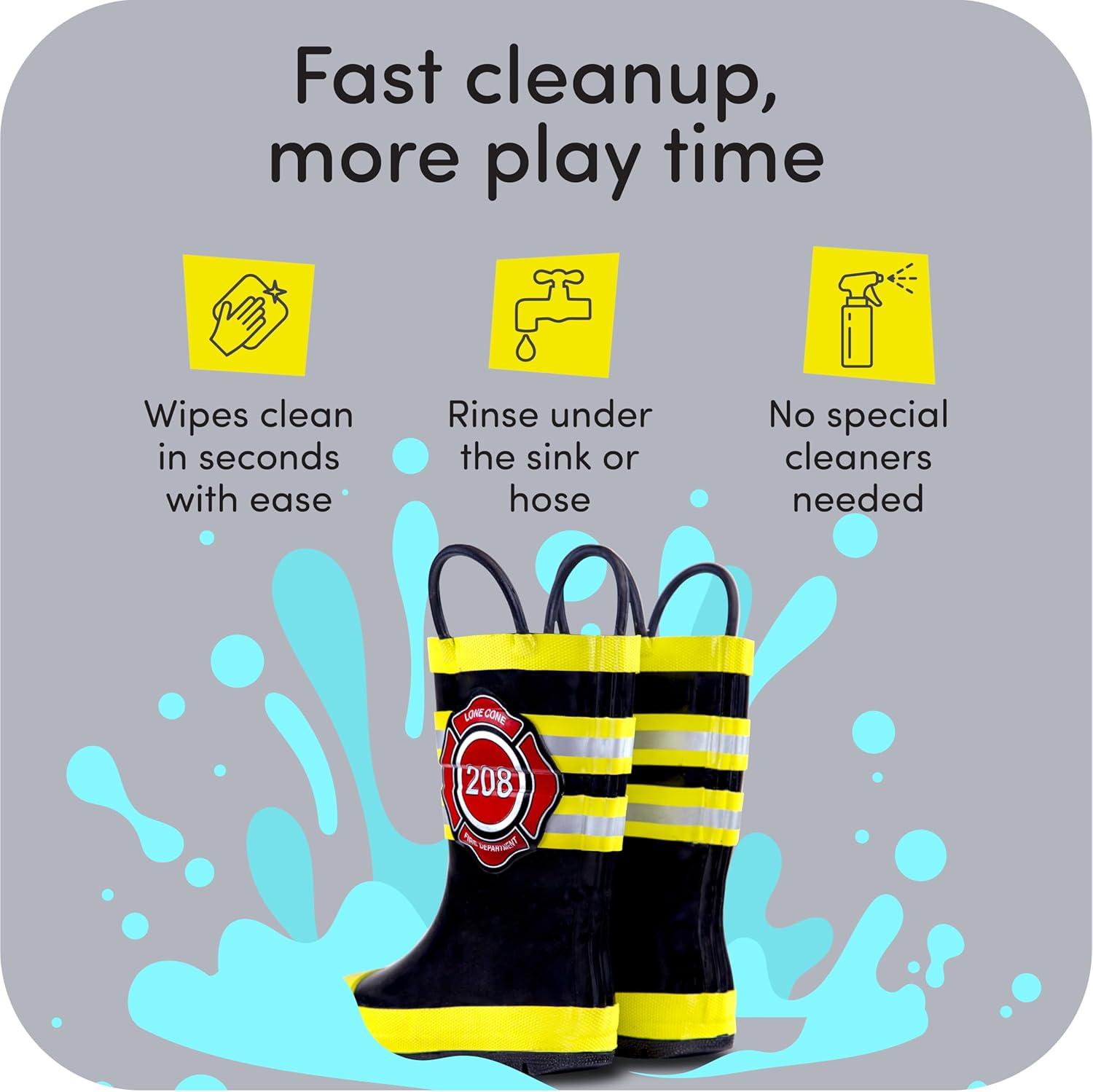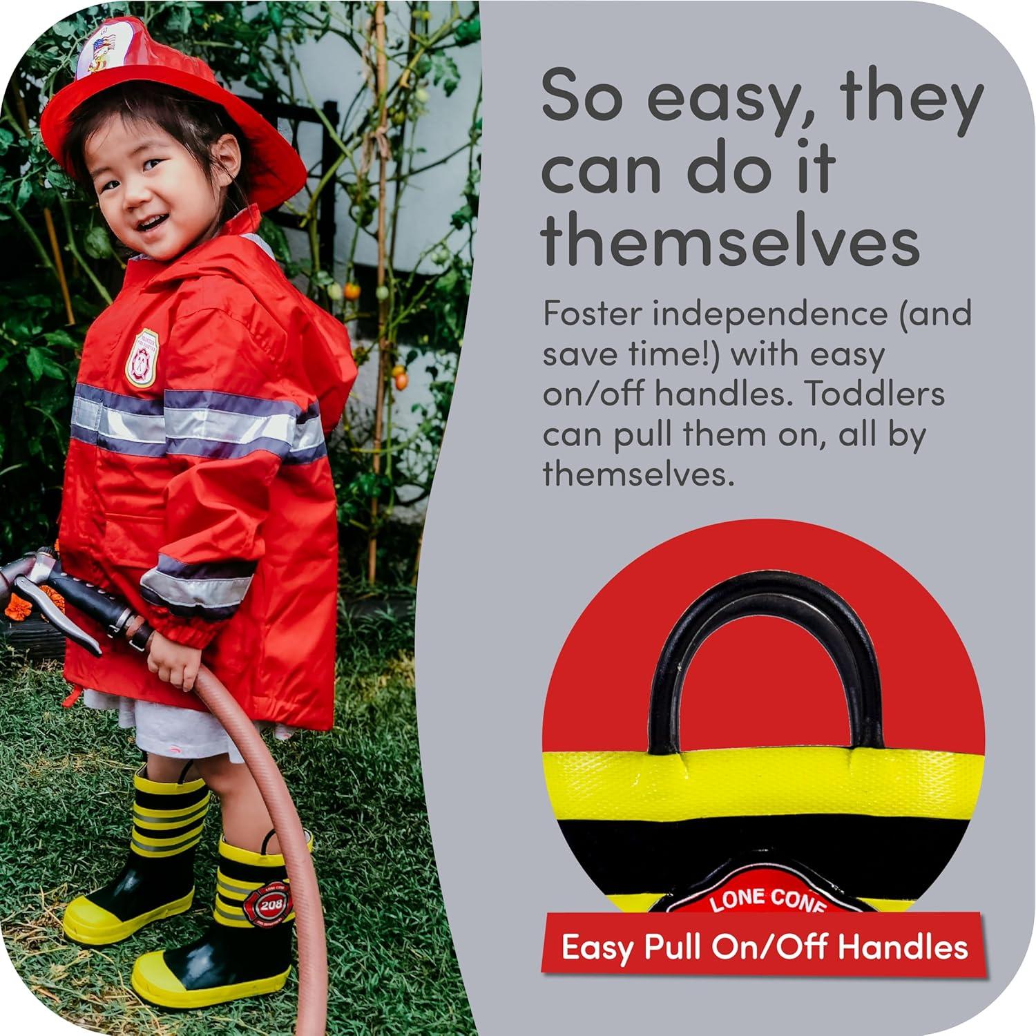 Lone Cone Kids Rain Boots for Girls & Boys – Waterproof Natural Rubber Toddler Rain Boots with Non-Slip Outsole & Easy Pull Handles – Solid, Pattern & Glitter Designs(24 – Fire Chief)