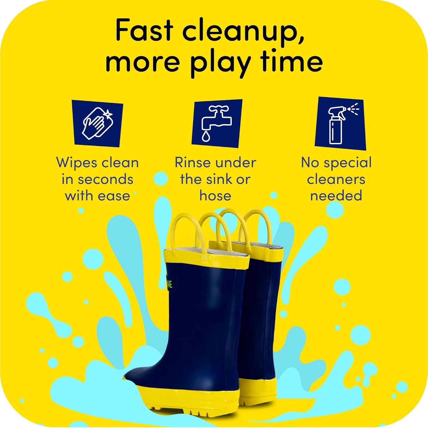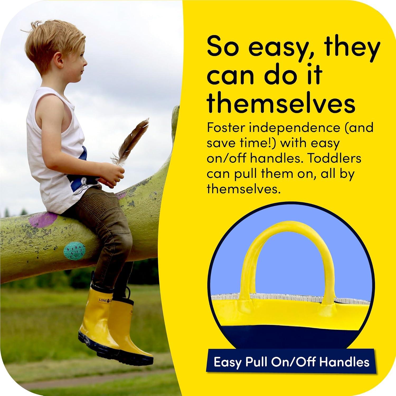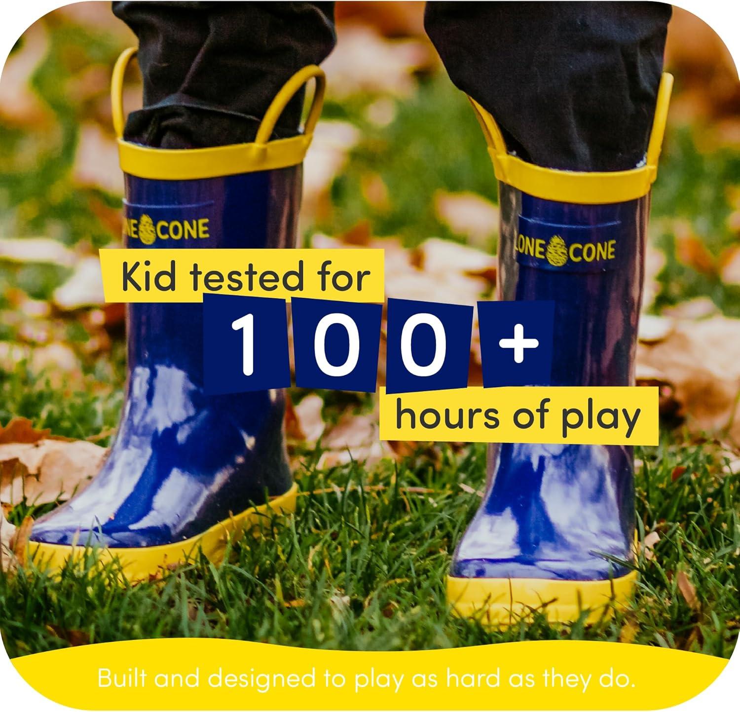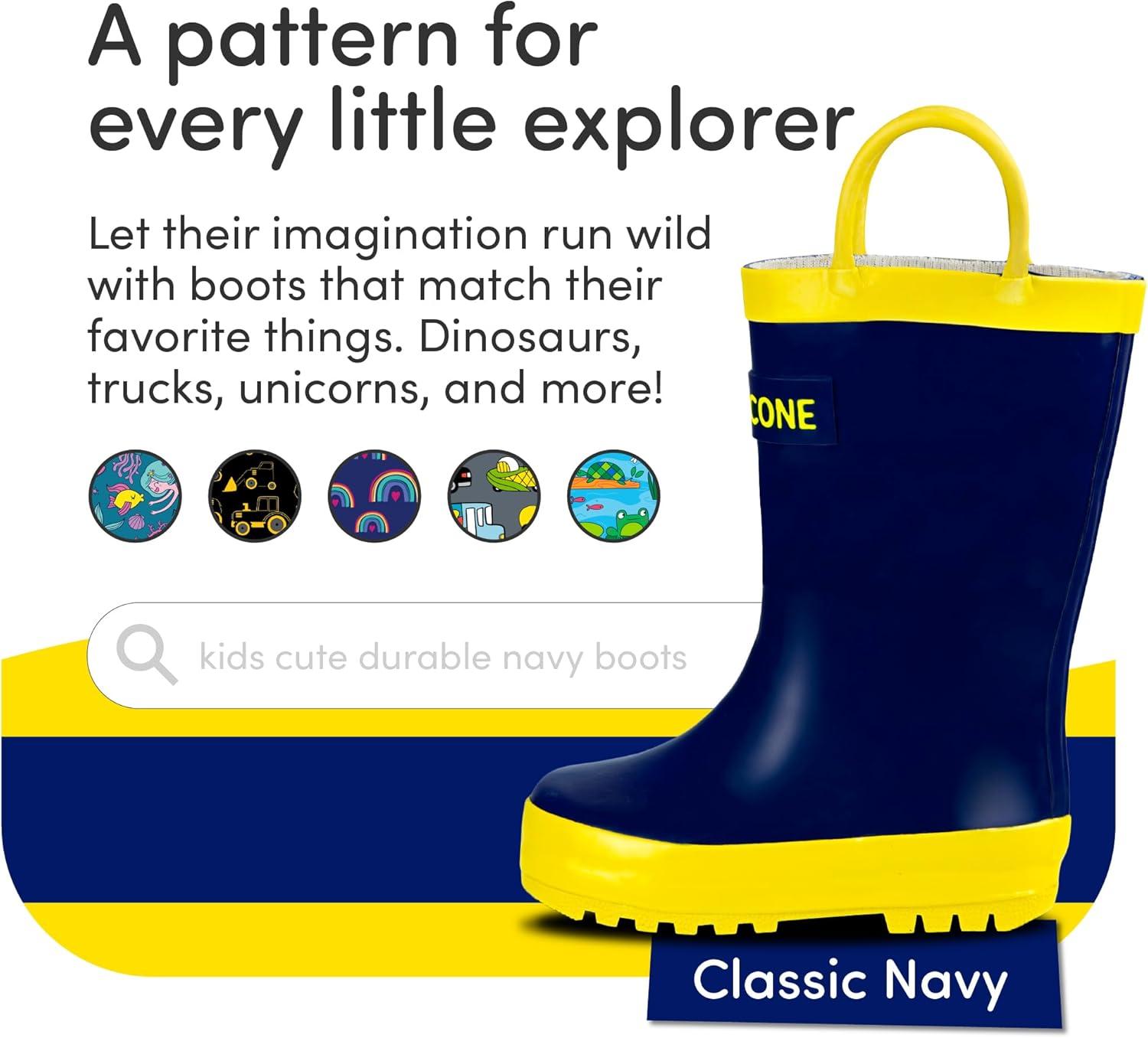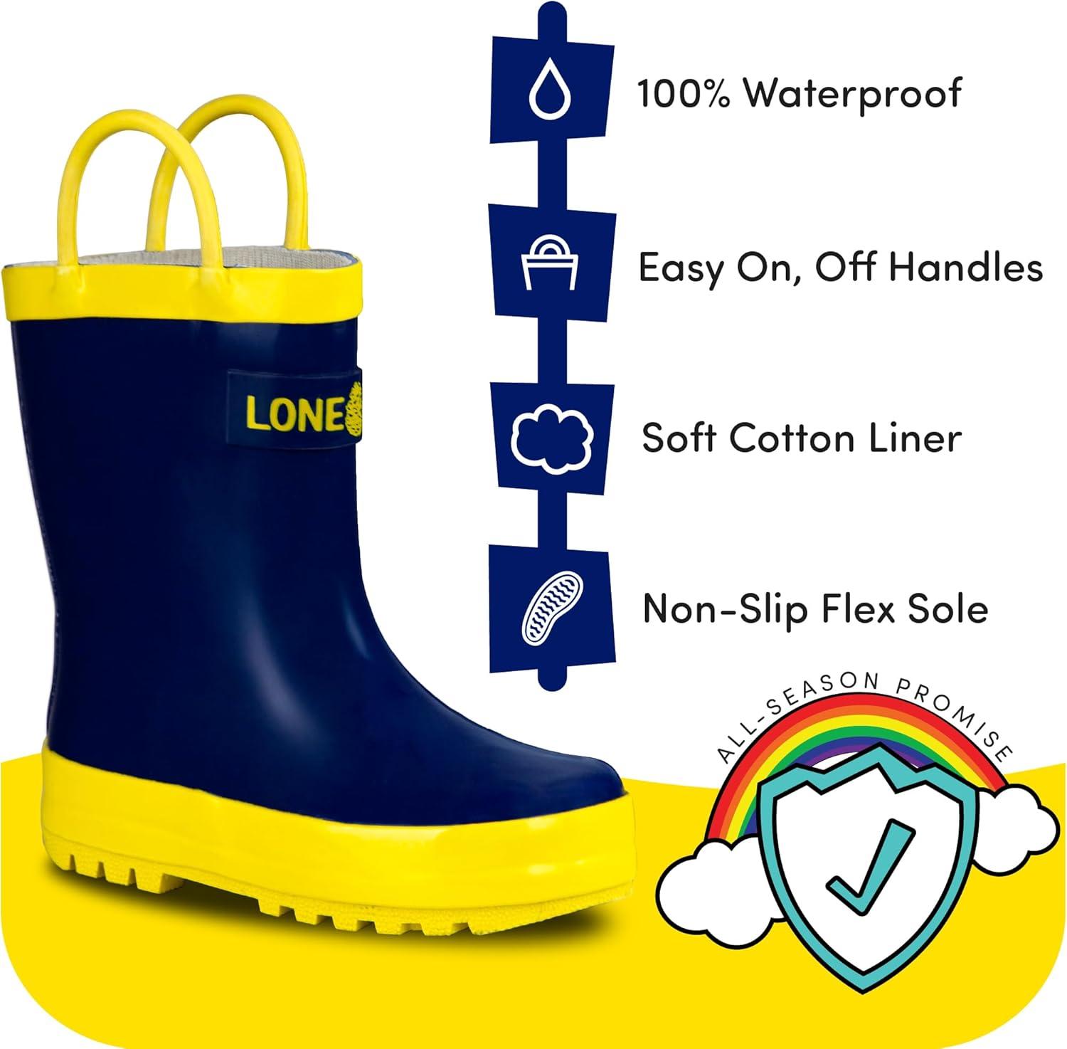 Lone Cone Kids Rain Boots for Girls & Boys – Waterproof Natural Rubber Toddler Rain Boots with Non-Slip Outsole & Easy Pull Handles – Solid, Pattern & Glitter Designs(30 – Classic Navy)