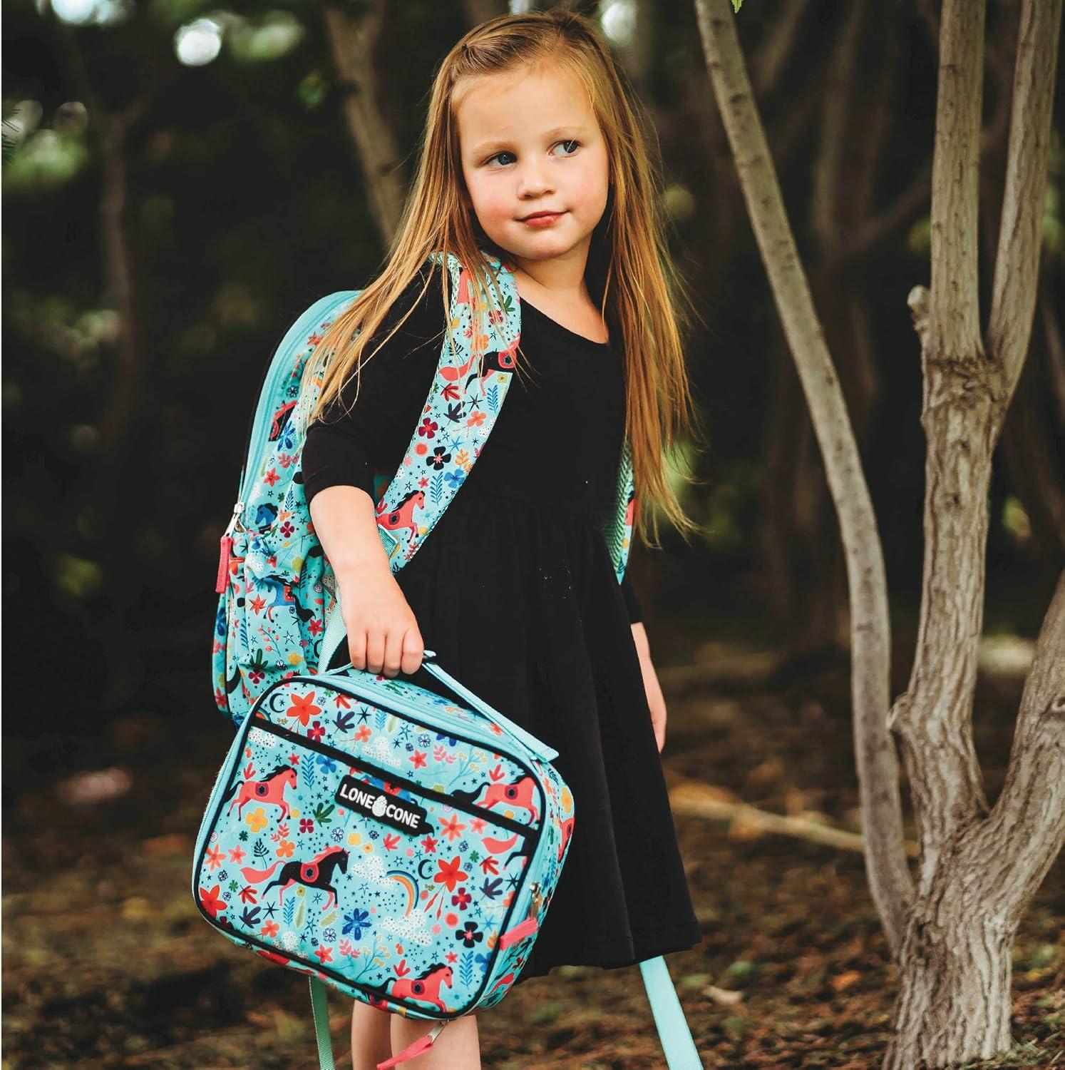 LONECONE Kids’ Backpacks for Boys & Girls, Sizes for Preschool Through Elementary, Moroccan Horses, Kit (15″ Backpack w/Lunch Box) – Girls Bookbag with Lunch Box